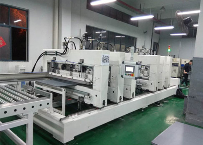 プラスチック カバーの生産機械はPLCの制御システム(SIEMENS)、自動供給の単位、端のトリミングの単位、円形/平らな/先の尖った端のシーリング単位、穴の細長い穴がつく/読取り穿孔機、型抜きの単位含んでいて、単位(作る蝶番)に折り目を付け、単位および熱溶解の溶接の単位(バット融合の溶接工)を積み重ねる。未加工板は切断が任意であることを見た。